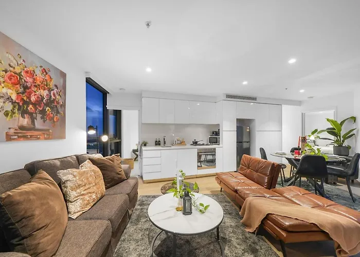 Dankzij de centrale locatie van het appartement van 70 m² ligt de Eureka Tower op 750 meter loopafstand. Het duurt niet lang om het Melbourne Aquarium te bereiken, op maar 14 rijminuten verderop.